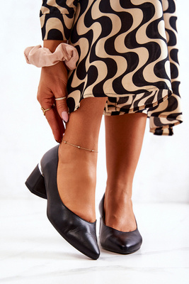 Жіночі човники на блочному каблуці Maciejka 02629-05 лаковані чорні