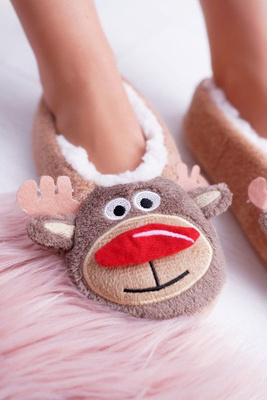 Домашні жіночі різдвяні балетки з оленями SOXO бежеві