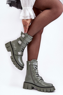 Жіночі робочі черевики на блискавці з темно-зеленим декором Ciossava