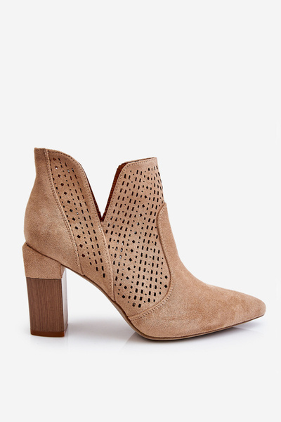 Ажурні замшеві чоботи на підборах бежеві Leanna