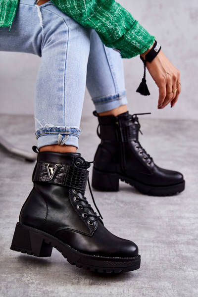 Шкіряні черевики з поясом і шпильками Чорні Lanelly