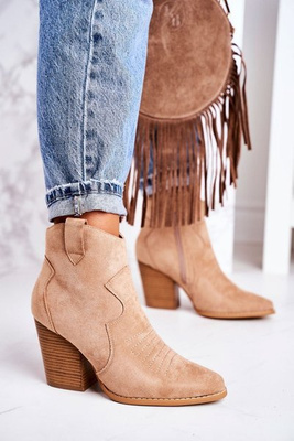 Жіночі утеплені ковбойські чоботи на каблуці бежеві Маргарет