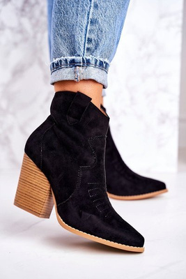 Класичні жіночі ботильйони замшеві чорні на каблучці
