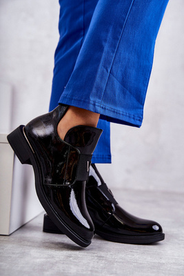 Лаковані теплі черевики на ланцюжку Чорні Karoline
