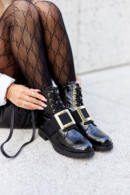 Жіночі шкіряні черевики Maciejka лаковані чорні тварини 04091-72