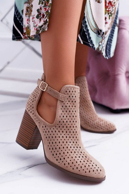 Жіночі весняні ажурні чоботи на підборах бежеві GoodDay
