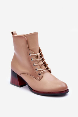 Жіночі шкіряні чоботи на підборах Maciejka 04492-14 темно-бежевий
