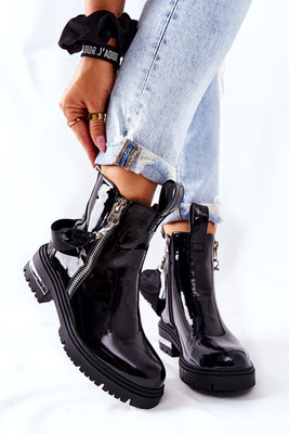 Шкіряні лаковані чоботи із застібкою Чорний Cortona