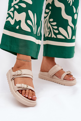 Жіночі Сандалі На Платформі З Золотими Пряжками Бежеві Wernone