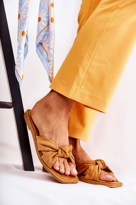 Жіночі тапочки на танкетці з бантом Коричневі Тайла