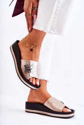 +3Шкіряні жіночі тапочки Nicole 2735 біло-золоті