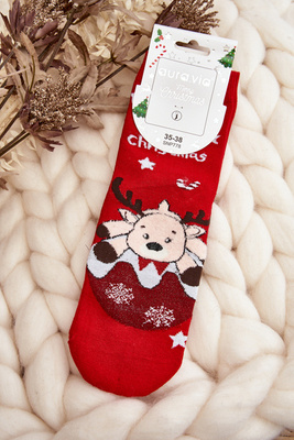 Жіночі різдвяні шкарпетки з червоним оленем