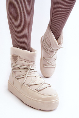 Жіночі зимові черевики на платформі та зав'язці бежевого кольору