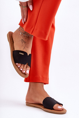 Жіночі зручні тапочки на плоскій каблуці чорного кольору Coraline