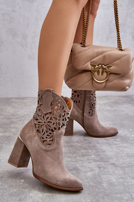 Замшеві ажурні ковбойські черевики Lewski Shoes 3265 Темно-бежевий