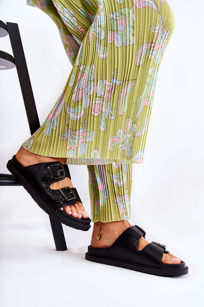 Жіночі шкіряні тапочки з пряжкою Devia зелені