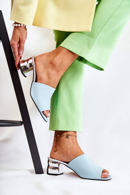 +19Шкіряні жіночі тапочки на каблуці Blue Perry