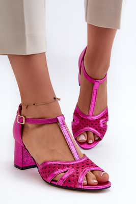 Жіночі шкіряні босоніжки на підборах Maciejka 06551-15 Фуксія