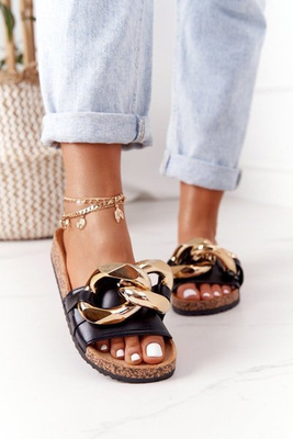Тапочки на корковій підошві з ланцюжком Чорні Last Dance