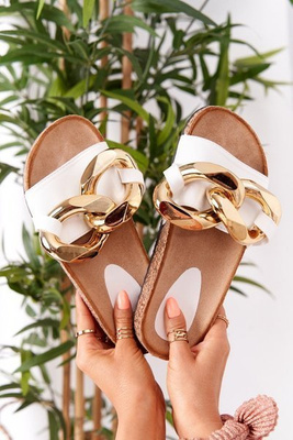 +3Тапочки на корковій підошві з ланцюжком білі останній танець