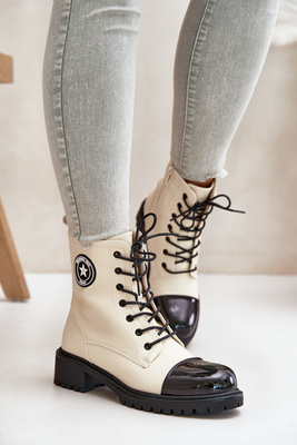 Лаковані жіночі робочі черевики утеплені з написами бежевого кольору Zinfreya