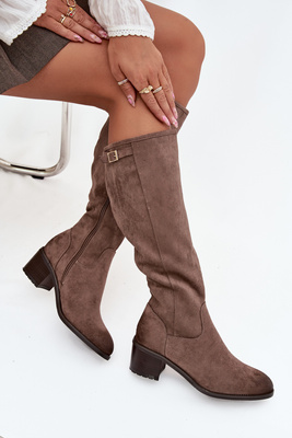 Жіночі утеплені чоботи на підборах з оздоблювальним ремінцем бежеві Galissa