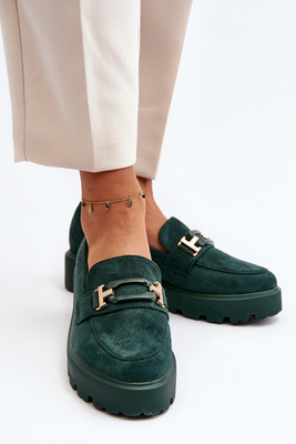 Жіночі лофери з прикрасами темно-зелені Dananei