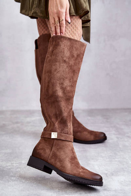 Жіночі замшеві чоботи на плоскій підошві коричневого кольору Henrike