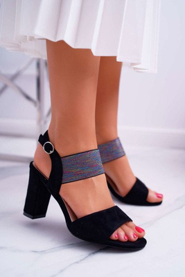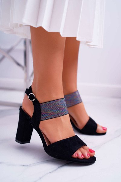 Жіночі босоніжки на шпильці на кольоровому каблуці чорні Niente