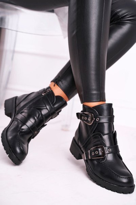 Чоботи жіночі із золотою пряжкою чорні Happy Su