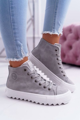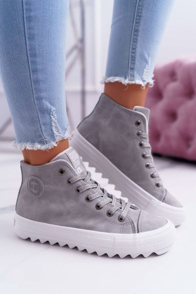 Жіночі утеплені кросівки Big Star на високих підборах сірі EE274114