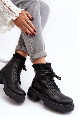 Чоботи жіночі на шнуровці D&A CR8163 Чорні