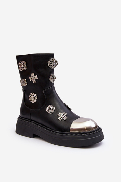 Шкіряні стьобані черевики з прикрасами D&A MR870-14 Чорні