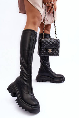 Лаковані чоботи на масивній платформі з блискавкою Чорний Рінго