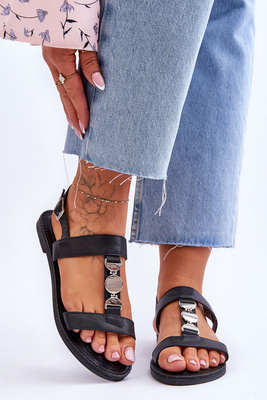 Сандалії на плоскій підошві з декором S.Barski KV-5541-45 Чорні