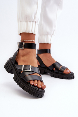 Жіночі чорні босоніжки з екошкіри з ремінцями Eladira