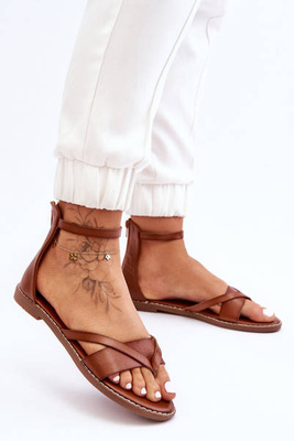 Жіночі шльопанці на плоскій підошві на блискавці, коричневого кольору Rise Up!