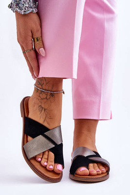 Класичні жіночі шкіряні тапочки Black Platinum Nancy