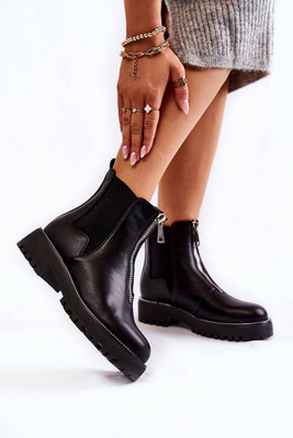 Жіночі теплі черевики на блискавці чорні Fabiola