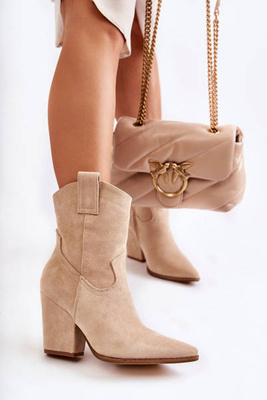 Жіночі замшеві чоботи з ковбойськими чобітьми бежеві Ariane