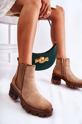 Замшеві чоботи на низькій поштині Beige Laurisa