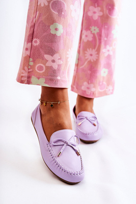 Жіночі шкіряні лофери з бантом фіолетові Aurila