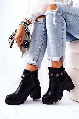 Шкіряні жіночі черевики на високому каблуці чорні Макбет