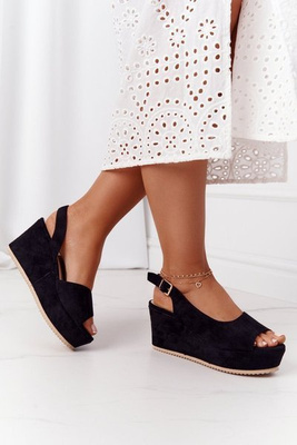 Чорні замшеві босоніжки на танкетці. Час вечірки