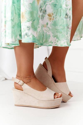 Бежеві замшеві босоніжки на танкетці. Час вечірки