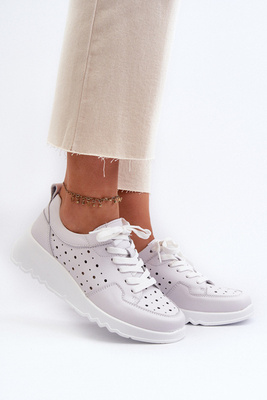 Жіночі ажурні кросівки на танкетці з натуральної шкіри світло-сірі S.Barski LR482