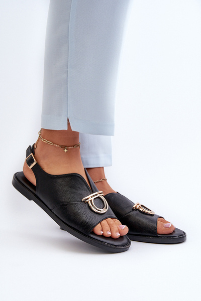 Жіночі босоніжки на плоскій підошві з золотим декором Vinceza 17321 Чорні