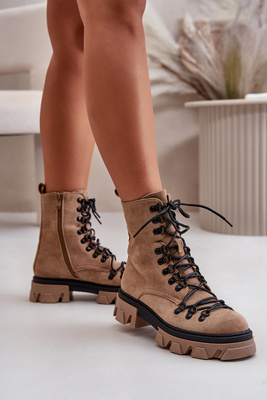 Жіночі замшеві чоботи на зав'язках бежеві Vanita