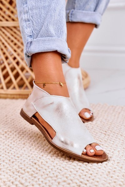 +2Жіночі шкіряні босоніжки Nicole 2622 білий металік