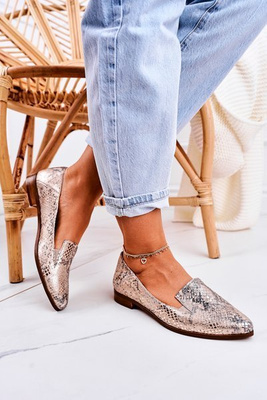 Жіночі шкіряні мокасини з тваринним принтом Золотий Скарлетт